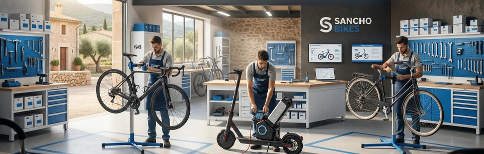 En Sancho Bikes te ayudamos a disfrutar Mallorca como se merece: con las mejores bicicletas de alquiler, venta de bicis y accesorios, taller especializado y atención cercana de un equipo que vive el ciclismo de verdad 💙